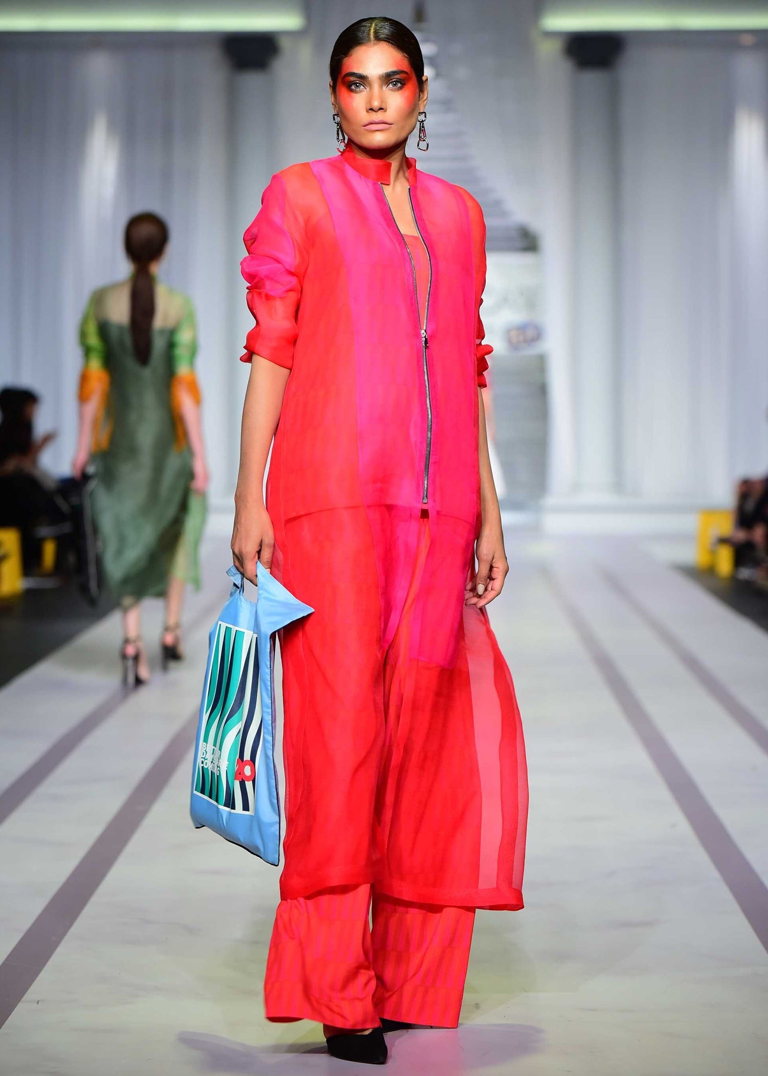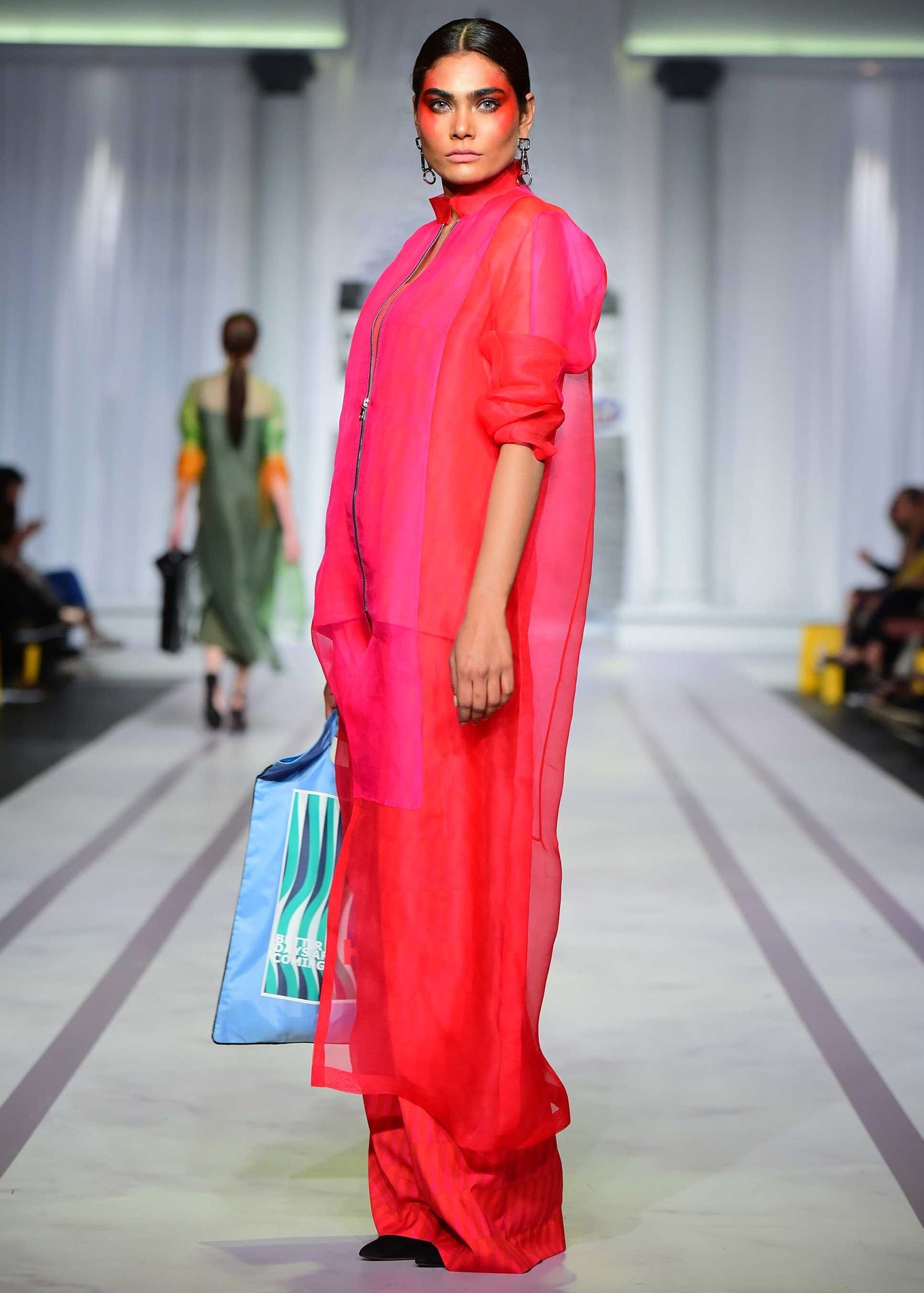Bramble is a floor length organza wrap with a metal zip closure perfect for a relaxed fit paired with our customized matching separates.